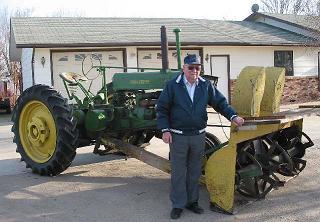 Louis Keller with his snow blower. (Current owner is Joe Keller and Marilyn Loegering). |